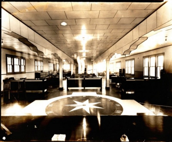 [Часы на полу изображающие “11-ый час” в здании администрации]